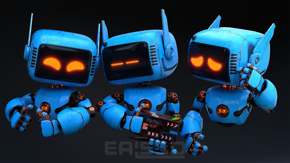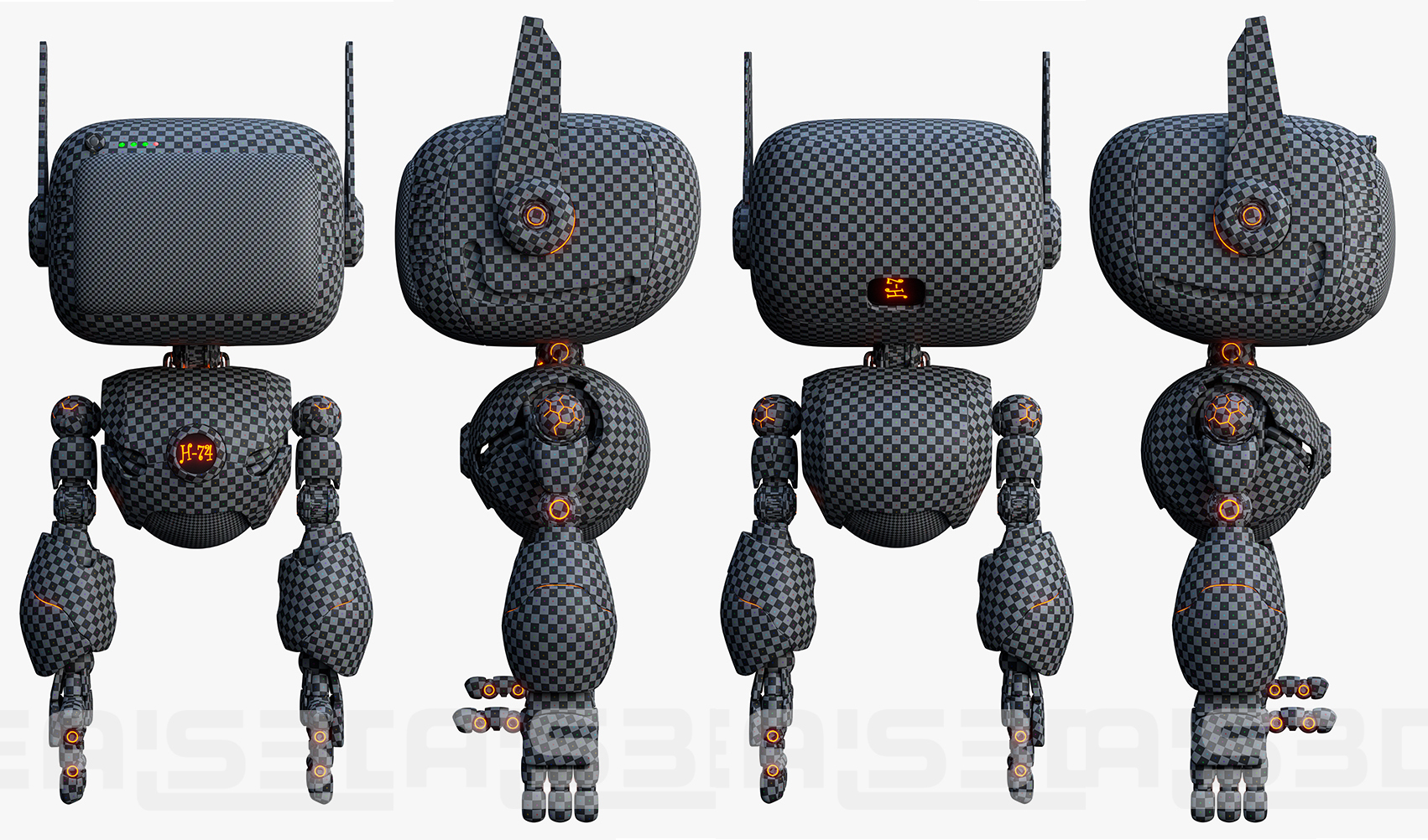 Introducing the H-74, a charming rigged 3D robot model crafted in Blender 4.1 and rendered from Cycles. This delightful model have faces from 7 different texture options (Orange and Blue eyes).